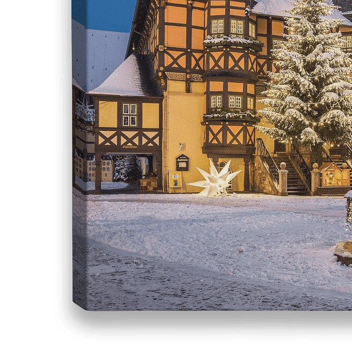 Kerstversieringen voor het stadhuis van Wernigerode, Duitsland