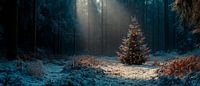 Een magisch winterwonderland ontvouwt zich in zachte lichtstralen tussen hoge, majestueuze bomen. De eenzame, sierlijke kerstboom, gehuld in ijzige glamour, nodigt je uit om te dromen. Dit kunstwerk is ideaal voor de woonkamer en creëert een gezellige en feestelijke sfeer die herinneringen oproept aan fijne feestdagen en een gevoel van comfort verspreidt.