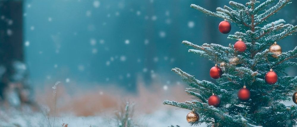 Een feestelijk versierde kerstboom staat in een magisch winterlandschap, omringd door zachtjes vallende sneeuw. Glimmende kerstballen schitteren in het diffuse licht, terwijl de rust van het bos een contemplatieve sfeer creëert. Dit motief is ideaal voor de woonkamer en brengt de warmte van Kerstmis in elke kamer.