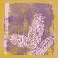 Monotype print van dennentakken in heldere neon- en pastelkleuren.