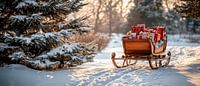 Een dromerige winterochtend ontvouwt zich met een rustieke sleetocht door glinsterende sneeuw. De kleurrijke cadeautjes fonkelen in het zachte licht en stralen feestelijke verwachting uit. Dit sfeervolle tafereel brengt gezelligheid en liefdevolle warmte in elke woonkamer, perfect voor contemplatieve momenten met familie en vrienden tijdens het koude seizoen.