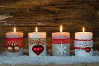 Koop de foto Kerstmis of Advent houten achtergrond met brandende kaarsen van Alex Winter als print op canvas, aluminium dibond, (ingelijste) fotoprint, behang en ArtFrame. Voor jou op maat geprint in Fine-Art kwaliteit.