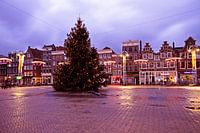 Kerstmis op de Nieuwmarkt in Amsterdam Nederland bij zonsondergang