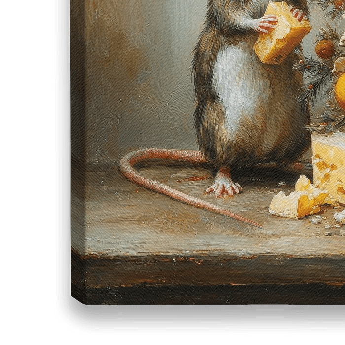 Koop dit schilderij Kerstmuis met kaas en boompje – warme wintertafreel vol charme van But First Framing als reproductie op canvas, aluminium dibond, (ingelijste) fotoprint, behang en ArtFrame, op maat geprint in Fine-Art kwaliteit.
