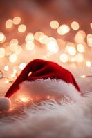 Een feestelijke kerstmagie ontvouwt zich door het heldere rood van de hoed, die zacht ligt op een pluizige achtergrond. Omringd door stralende lichtjes straalt het tafereel warmte en gezelligheid uit. Deze afbeelding is perfect voor de woonkamer en nodigt uit om te dromen en te vieren - ideaal om de voorpret van de feestdagen op te…