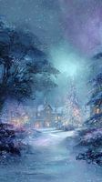 Deze dromerige winterillustratie toont een vredig dorp omhuld door een magische sterrenhemel en fonkelende sneeuw. In het midden schittert een rijkversierde kerstboom, omringd door sfeervol verlichte huizen die warmte uitstralen in het koude landschap. Blauwe en paarse tinten creëren een serene sfeer vol verwondering, terwijl zachte…