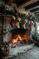 Deze haard straalt sfeervolle gezelligheid uit, omlijst door feestelijke kousen en weelderig groen. Het flakkerende licht van het vuur nodigt uit tot gezellige avonden samen en geeft de kamer een warme sfeer. Ideaal voor in de woonkamer om familie en vrienden te inspireren tijdens de feestdagen en een ontspannen sfeer te creëren.