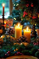 Delicate lichtjes weerspiegelen de warmte van feestelijke gezelligheid, terwijl smaakvol versierde kaarsen en glinsterende kerstballen een uitnodigende charme uitstralen. Sparrentakken en dennenappels vormen samen een harmonieus geheel dat perfect past in een woonkamer of kerstkamer - en bijdraagt aan de feestelijke sfeer van de…