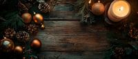 Warm kaarslicht, glinsterende gouden kerstballen en de rustieke charme van hout creëren een uitnodigende sfeer. De combinatie van dennenappels en feestelijke elementen nodigt uit om te blijven hangen en wekt de verwachting van feestelijke vieringen. Ideaal voor in de woonkamer om een gezellige sfeer te creëren en het hart te verwarmen…