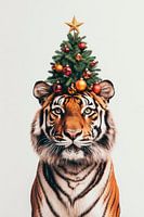 Een majestueuze tijger versierd met feestelijke kerstboomdecoraties brengt een onverwachte, speelse sfeer in elke kamer. De combinatie van krachtige elegantie en vrolijke kerstversiering zorgt voor een unieke blikvanger die prachtig zal staan in een woonkamer of een creatieve hoek op kantoor. Een echte blikvanger voor alle dierenliefhebbers!