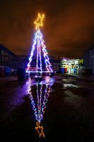 Moderne kerstboom verlichting in Breda - Nederland met weerspiegeling in het water, genomen in de avond