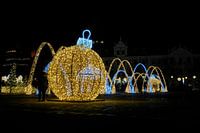 Kerstverlichting op het domplein van Maagdenburg in de kersttijd