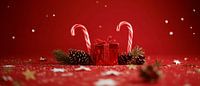 Een feestelijk arrangement in heldere roodtinten wekt onmiddellijk de verwachting van Kerstmis. Zoete zuurstokken, een sprankelend cadeau en levendige dennenappels harmoniëren perfect in dit winterse tafereel. Ideaal voor in de woonkamer, waar het de nadruk legt op gezellige gesprekken en de feestelijke stemming. Dit schilderij trekt…