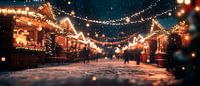 Een magische kerstmarkt onder een fonkelende sterrenhemel, omringd door feestelijk verlichte kraampjes en een besneeuwde omgeving. De warme lichtjes creëren een uitnodigende sfeer, perfect voor in de woonkamer, waar ze gezelligheid en feestvreugde verspreiden. Dompel jezelf onder in de romantiek van de winter en haal herinneringen op aan vreugdevolle feesten.