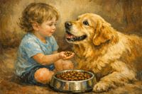 In de luwte van de middag, als de rest van het huis even stil is, wordt er een pact gesloten. Met een handjevol brokjes en een blik vol vertrouwen deelt een kleine ontdekkingsreiziger zijn wereld met zijn beste vriend. Geen woorden nodig, enkel de warmte van een zachte vacht en de belofte van een vriendschap die nooit zal wijken. Wat…
