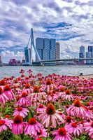 Een mooie contrast om te zien: de Echinacea's (zonnehoedjes) tegenover de skyline van Rotterdam