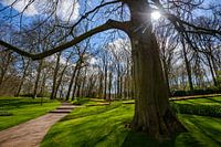Keukenhof park op een mooie lentedag met zon en blauwe lucht. Deze foto is genomen tijdens de lockdown in de lente van 2021.