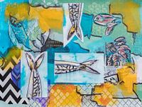 Illustraties (gemengde techniek) op papier in collagestijl.
