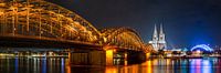 Panorama Keulen 's nachts, met Hohenzollernbrug, Keulse Dom, Rijn en Opera House.
