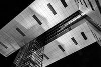 Nachtopname van een verlicht kantoorgebouw in het centrum van Keulen aan de Rijnhaven