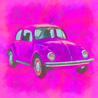 Flowerpower roze Kever op een psychedelic achtergrond. Sixties, flower power.