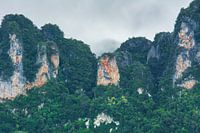 Mistig en bebost Karstgebergte in Nationaal Park Khao Sok, Thailand.