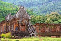 Oude vervallen Boeddha tempel Wat Phu (Phou) Angkor uit de oudheid, midden in het oerwoud / jungle en bergen van Champasak, Laos.