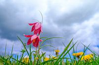 Kievitsbloemen (Fritillaria meleagris) in een weiland tijdens een mooie zonnige voorjaarsdag in de delta van de rivier de Vecht in Overijssel, Nederland.