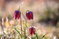 3 Kievitsbloemen in het ochtendlicht. Veldje in Arboretum Heempark Delft