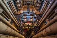 De indrukwekkende zuilen van dit monumentale Art Deco gebouw convergeren naar het altaar.