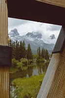 Op zoek naar een mooi plaatje stuit ik op een brug waar je, als je even door de knieën zakt, een mooi kijkgaatje kan vinden richting de bergen.