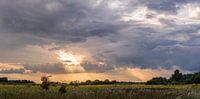 Een onweerslucht vlak voor zonsondergang, deze creëerde mooie kijkgaatjes voor de zon en gaf hiermee mooie jakobsladders.