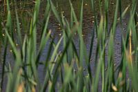 Achter het riet zitten veel kleine kikkertjes die in de miniatuur niet te zien zijn.