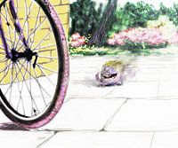 Een soort kikker (denk ik) die erg kwaad wordt als hij fietsbanden ziet. - digitaal werk 2001