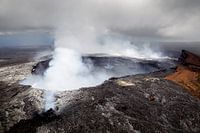 Luchtfoto van de rokende Halemaumau krater op Kilauea, een actieve vulkaan op Big Island, Hawaii, USA.