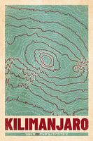 De Kilimanjaro in Tanzania als topografische kaart. Retrostijlkaart met hoogtelijnen. Stijlvolle print voor wandelaars, bergbeklimmers en outdoorfans - ook als cadeau-idee!
