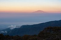 Zonsopgang vanaf de Kilimanjaro in Tanzania. Aan de horizon is Mount Meru zichtbaar. Deze foto is gemaakt vanuit Shira Camp op de Machame Route.