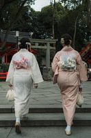 Op deze foto staan pure Japanse traditie en esthetiek centraal. Twee vrouwen in prachtige kimono's lopen samen de trap op naar een tempel, vergezeld van kersenbloesemachtige haaraccessoires en gedetailleerde kleding. Op de achtergrond omlijsten een torii poort, de tempel en de natuur het tafereel en leiden ons binnen in de wereld van Kyoto, het culturele hart van Japan. De foto weerspiegelt harmonie, vriendschap, mode, spiritualiteit en waardering voor de cultuur van het Verre Oosten. Ideaal voor alle liefhebbers van Japan, traditionele kleding, reisfotografie en Aziatische kunst. Als muurschildering geeft dit motief elke kamer een aura van elegantie, cultuur en inspiratie - en nodigt je uit om je onder te dompelen in de verhalen van het oude en hedendaagse Nippon. Een must-have voor kunstliefhebbers, Japan-enthousiastelingen en iedereen met een liefde voor de cultuur van het Verre Oosten.