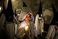 Kind in broederschap tijdens processie van de semana santa in Sevilla Spanje. Wout Kok One2expose
