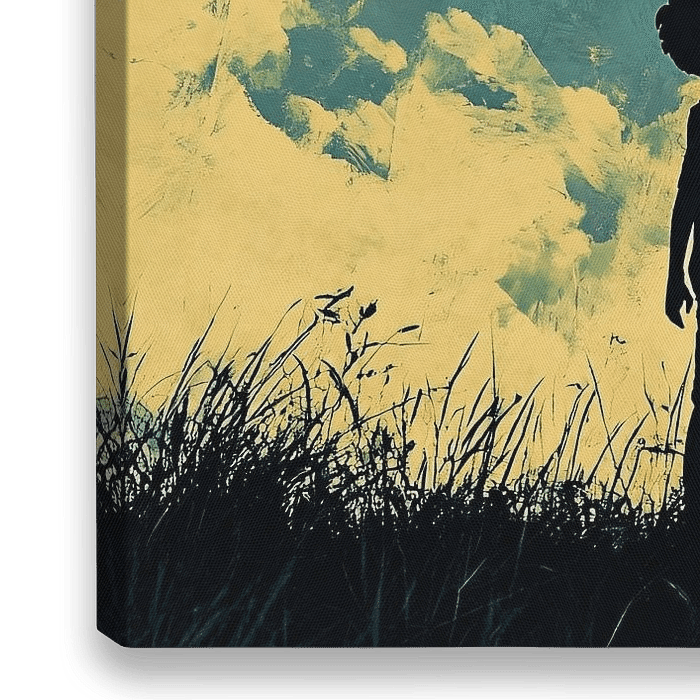 Dit unieke kunstwerk brengt fantasie tot leven met een silhouet van een kind dat een papieren vliegtuigje lanceert, omringd door een explosie van kleurrijke tinten. Het schilderij combineert eenvoud en abstractie om een inspirerende en speelse sfeer te creëren. Ideaal als opvallend stuk in een modern interieur of creatieve ruimte.