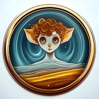 Dompel jezelf onder in het oog van een hemelse droom. "Child of the Evening Constellation" portretteert een mystiek wezen, geboren uit sterrenstof en stilte, zwevend in een vloeiende draaikolk van ruimte en tijd. Omlijst door een kosmisch medaillon roept deze spookachtige figuur verwondering, mysterie en verre verbondenheid…