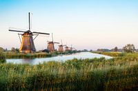 Misschien wel één van de meest toeristische plekken van Nederland, Kinderdijk. Als Hollander een plek waar je geweest moet zijn. Op deze foto een karakteristieke rij van molens met blauwe lucht.