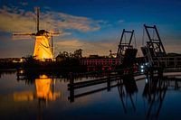 Kinderdijk de molens in de avond tijdens de verlichtingsweek