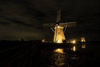 Tijdens nacht valt s avonds in het wereldberoemde Kinderdijk in Nederland met de molens verlicht