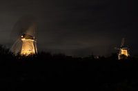 Tijdens nacht valt s avonds in het wereldberoemde Kinderdijk in Nederland met de molens verlicht