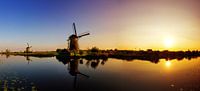 Prachtige panorama van de molens bij Kinderdijk tijdens zonsondergang