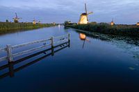 Foto tijdens de verlichtingsweek in Kinderdijk, september 2019. Foto is genomen tijdens het blauwe uurtje, net na zonsondergang