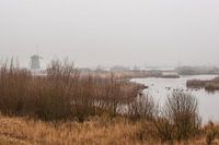 De windmolens aan de kinderdijk komen op deze mooie foto mooi uit in de mist van de ochtend.