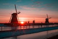 De molens van Kinderdijk, op een koude winterochtend in februari 2021, eindelijk kon er weer eens geschaatst worden!