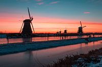 De molens van Kinderdijk, op een koude winterochtend in februari 2021, eindelijk kon er weer eens geschaatst worden!